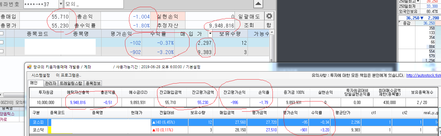 테스트는 수동적으로 직접 하였으나 자동매매시 오류가 발생할 수 있으니 모의투자에서 테스트를 진행하시기 바랍니다.
