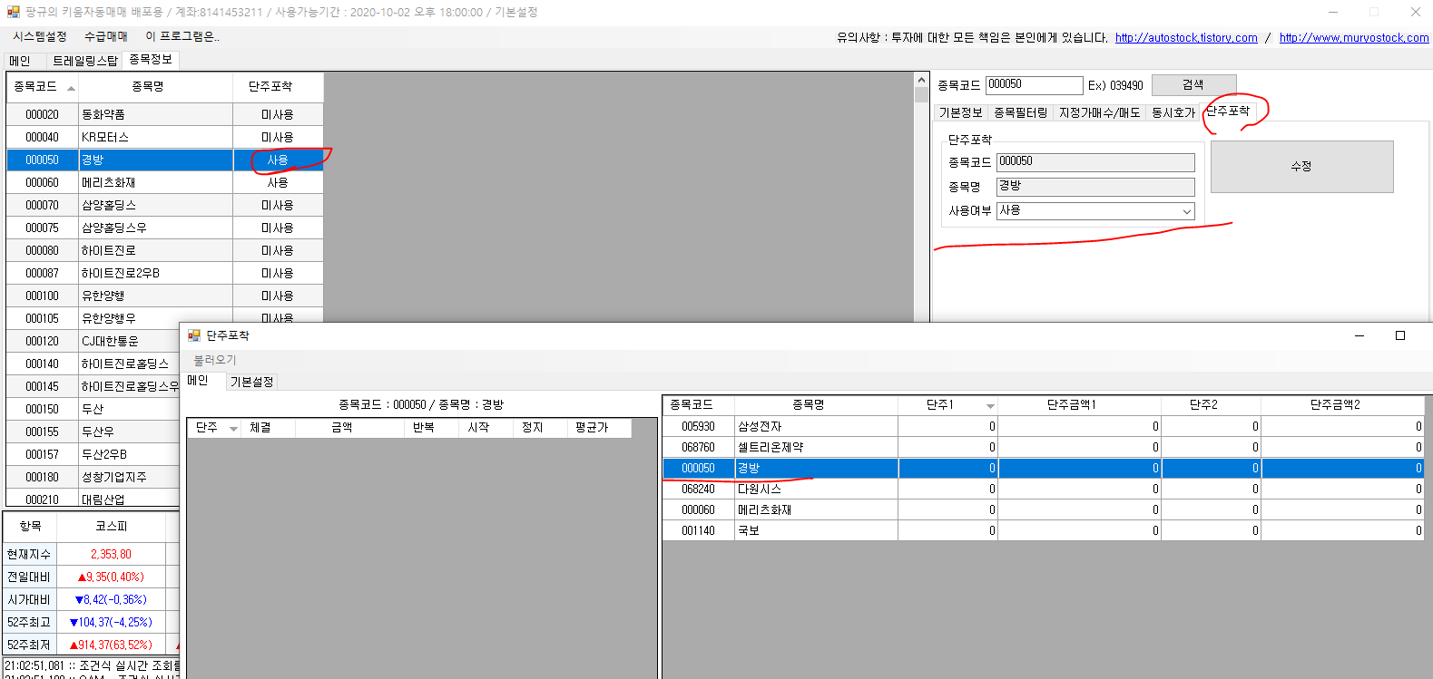 2. 종목정보에서 단주포착 사용/미사용 지정 |